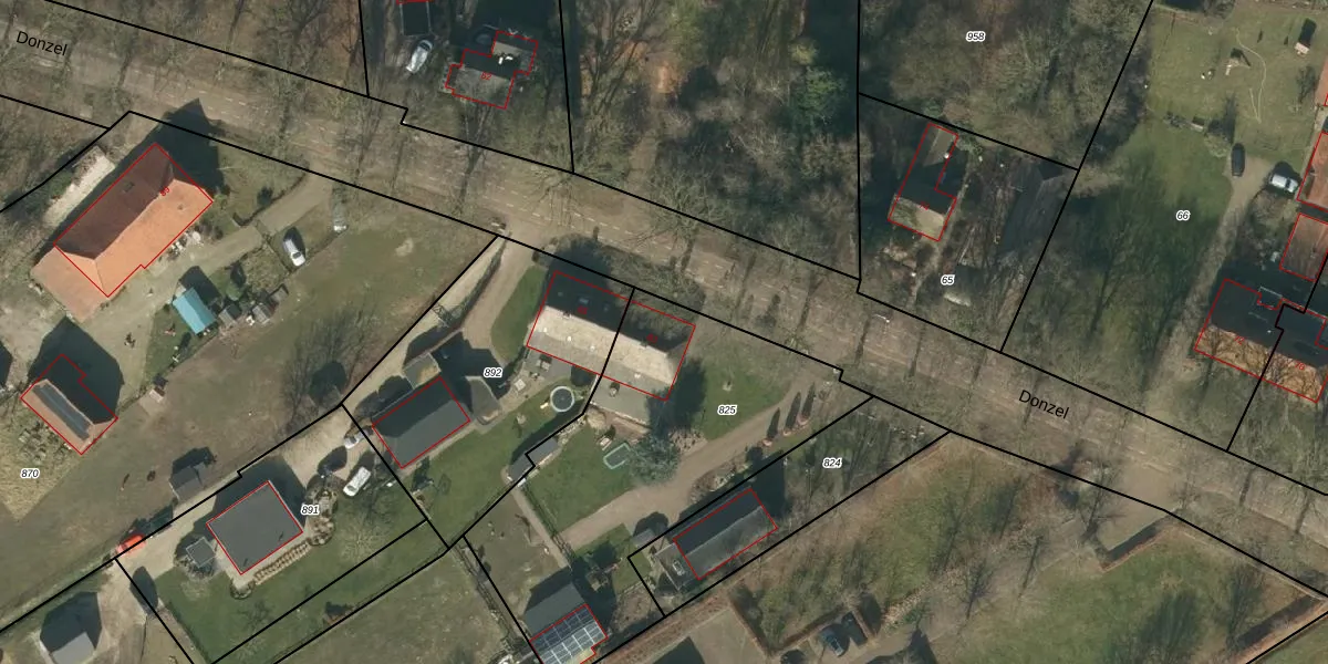 Het perceel waarop Donzel 83 staat heeft een oppervlakte van 1523 m². Dit is een zeer groot perceel. De perceeloppervlakte wordt geregistreerd door het Kadaster. Gedetailleerde informatie over de maten van dit perceel kunt u vinden in het rapport Kadastrale kaart met maatvoering van Donzel 83.