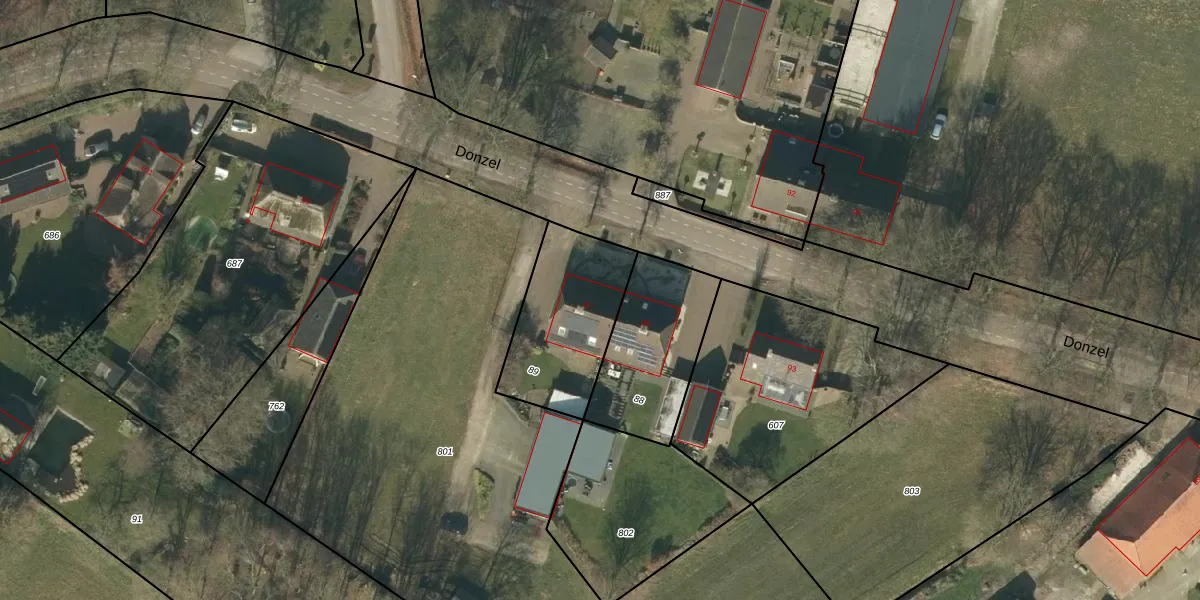 Het perceel waarop Donzel 97 staat heeft een oppervlakte van 460 m². Dit is een groot perceel. De perceeloppervlakte wordt geregistreerd door het Kadaster. Gedetailleerde informatie over de maten van dit perceel kunt u vinden in het rapport Kadastrale kaart met maatvoering van Donzel 97.