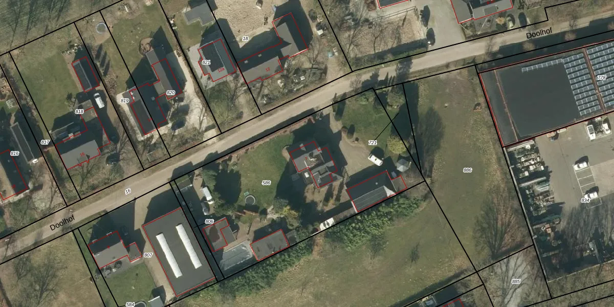 Het perceel waarop Doolhof 7 staat heeft een oppervlakte van 2550 m². Dit is een zeer groot perceel. De perceeloppervlakte wordt geregistreerd door het Kadaster. Gedetailleerde informatie over de maten van dit perceel kunt u vinden in het rapport Kadastrale kaart met maatvoering van Doolhof 7.
