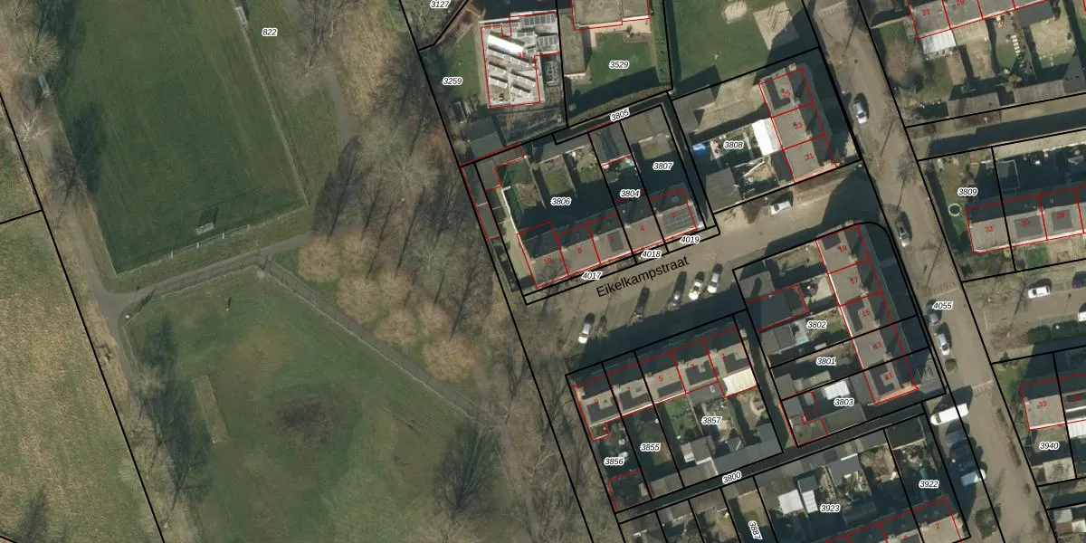 Eikelkampstraat 10 is gelegen op kadastraal perceel NTR00C3806. Deze kadastrale aanduiding is uniek en wordt gebruikt door het Kadaster om eigendomsrechten en andere zakelijke rechten vast te leggen. Het perceel maakt onderdeel uit van de kadastrale gemeente Nistelrode.