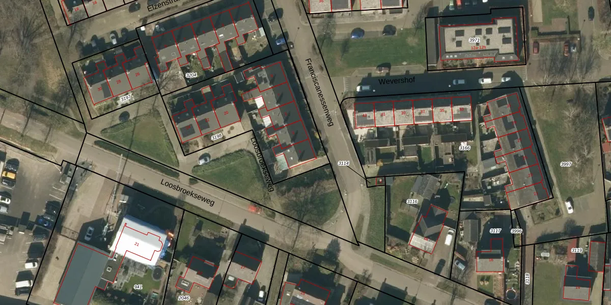 Het adres ligt op het perceel NTR00-C-3198, dat zich in de kadastrale gemeente Nistelrode bevindt. Het perceel is 1297 m² groot. Dat is kleiner dan de gemiddelde perceeloppervlakte in Nistelrode, dat op 5084,28 m² ligt. De grootste perceeloppervlakte in de kadastrale gemeente is 85,7 ha. De kleinste oppervlakte bedraagt 0 m². Op het perceel zijn 8 adressen aanwezig. In de Basisregistratie Kadaster (BRK) werden de grenzen van het perceel geregistreerd op 02-01-2007.