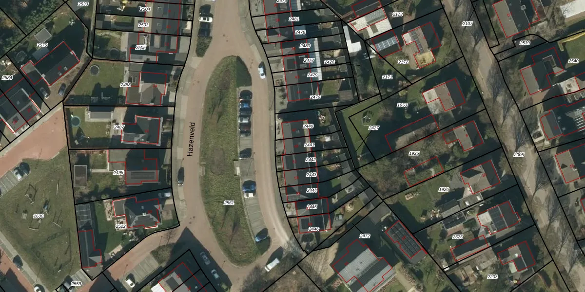 Hazenveld 49 is gelegen op kadastraal perceel NTR00B2441. Deze kadastrale aanduiding is uniek en wordt gebruikt door het Kadaster om eigendomsrechten en andere zakelijke rechten vast te leggen. Het perceel maakt onderdeel uit van de kadastrale gemeente Nistelrode.
