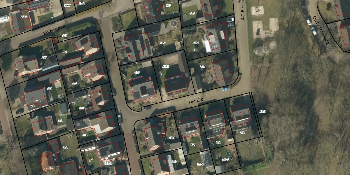 Het perceel waarop Het Erp 1-a staat heeft een oppervlakte van 508 m². Dit is een groot perceel. De perceeloppervlakte wordt geregistreerd door het Kadaster. Gedetailleerde informatie over de maten van dit perceel kunt u vinden in het rapport Kadastrale kaart met maatvoering van Het Erp 1-a.