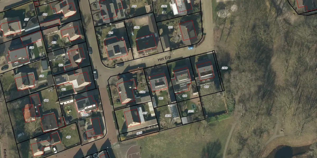 Het perceel waarop Het Erp 2 staat heeft een oppervlakte van 391 m². Dit is een groot perceel. De perceeloppervlakte wordt geregistreerd door het Kadaster. Gedetailleerde informatie over de maten van dit perceel kunt u vinden in het rapport Kadastrale kaart met maatvoering van Het Erp 2.