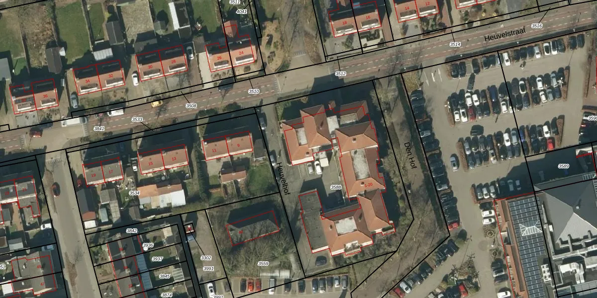 Heuvelhof 2 is gelegen op kadastraal perceel NTR00C3588. Deze kadastrale aanduiding is uniek en wordt gebruikt door het Kadaster om eigendomsrechten en andere zakelijke rechten vast te leggen. Het perceel maakt onderdeel uit van de kadastrale gemeente Nistelrode.