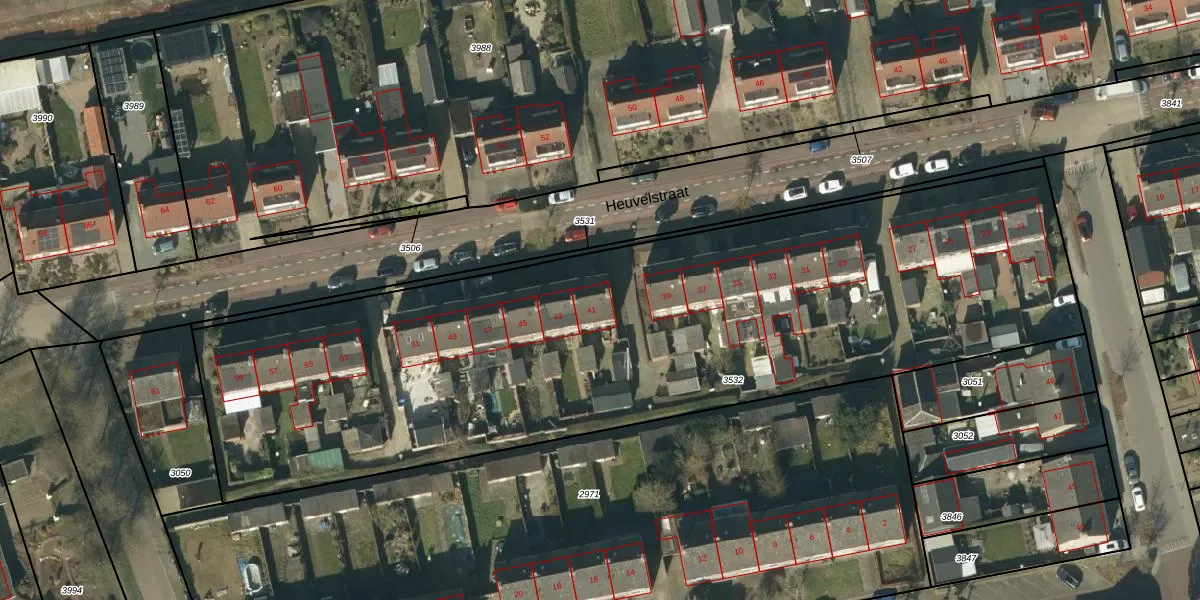 Heuvelstraat 41 is gelegen op kadastraal perceel NTR00C3532. Deze kadastrale aanduiding is uniek en wordt gebruikt door het Kadaster om eigendomsrechten en andere zakelijke rechten vast te leggen. Het perceel maakt onderdeel uit van de kadastrale gemeente Nistelrode.
