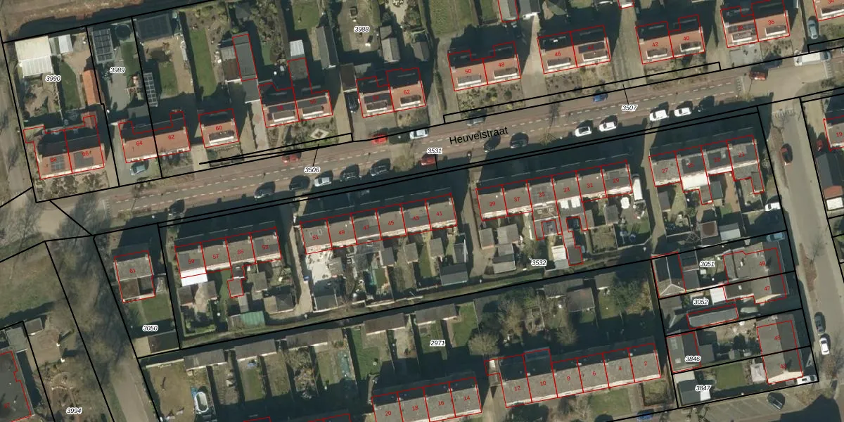 Het perceel waarop Heuvelstraat 43 staat heeft een oppervlakte van 4272 m². Dit is een zeer groot perceel. De perceeloppervlakte wordt geregistreerd door het Kadaster. Gedetailleerde informatie over de maten van dit perceel kunt u vinden in het rapport Kadastrale kaart met maatvoering van Heuvelstraat 43.