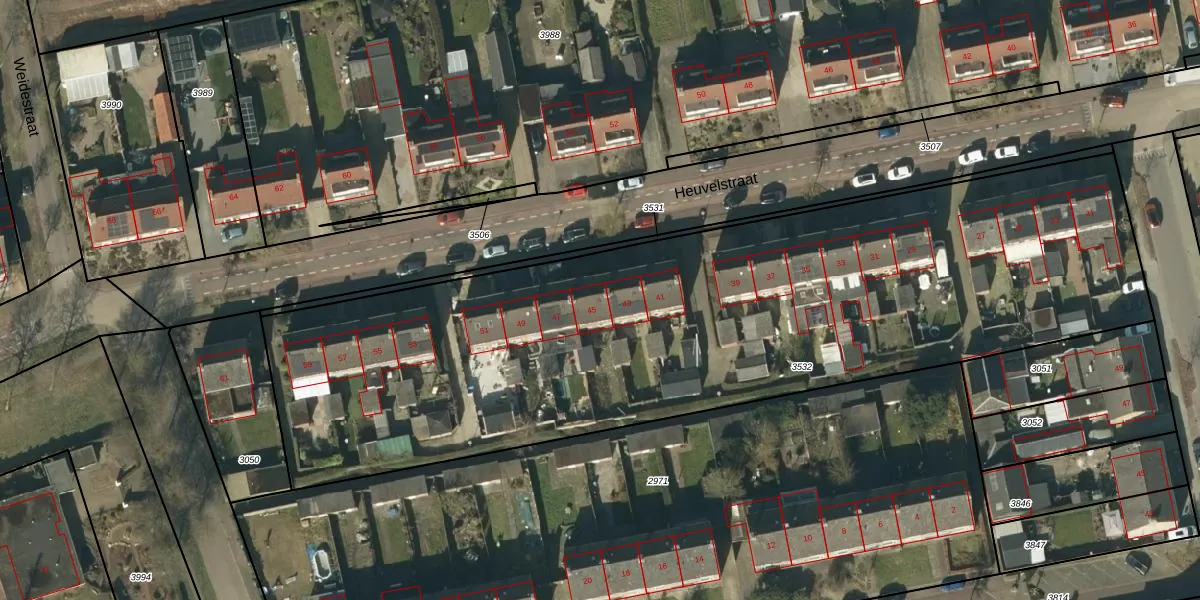 Heuvelstraat 45 is gelegen op kadastraal perceel NTR00C3532. Deze kadastrale aanduiding is uniek en wordt gebruikt door het Kadaster om eigendomsrechten en andere zakelijke rechten vast te leggen. Het perceel maakt onderdeel uit van de kadastrale gemeente Nistelrode.