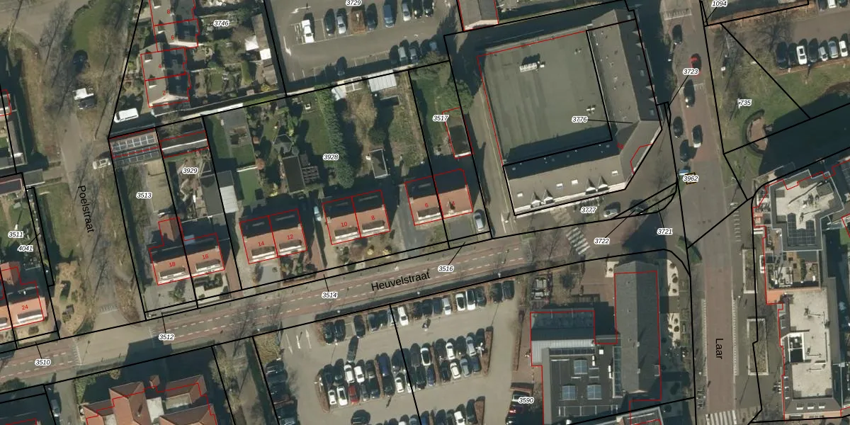 Heuvelstraat 6 is gelegen op kadastraal perceel NTR00C3928. Deze kadastrale aanduiding is uniek en wordt gebruikt door het Kadaster om eigendomsrechten en andere zakelijke rechten vast te leggen. Het perceel maakt onderdeel uit van de kadastrale gemeente Nistelrode.