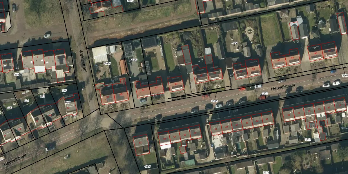 Heuvelstraat 60 is gelegen op kadastraal perceel NTR00C3988. Deze kadastrale aanduiding is uniek en wordt gebruikt door het Kadaster om eigendomsrechten en andere zakelijke rechten vast te leggen. Het perceel maakt onderdeel uit van de kadastrale gemeente Nistelrode.