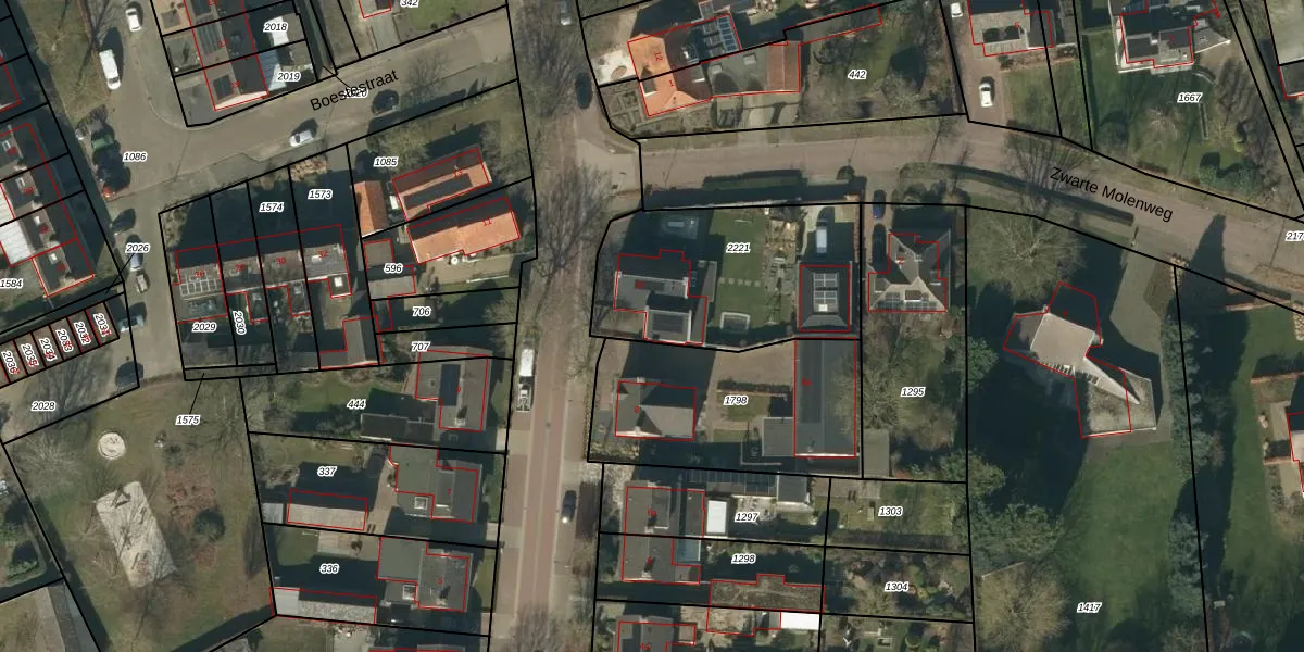 Het perceel waarop het adres ligt is NTR00-F-2221. De afkorting 'NTR00' staat voor kadastrale gemeente Nistelrode. De gemiddelde perceelgrootte in Nistelrode is 5101,48 m². Dit perceel is kleiner: de perceeloppervlakte bedraagt 834 m². Het grootste perceel in de kadastrale gemeente is 85,7 ha. Het kleinste perceel heeft een oppervlakte van 0 m². Er zijn geen andere adressen aanwezig op het perceel. De laatste wijziging in het de Basisregistratie Kadaster (BRK) was op 18-10-2018.