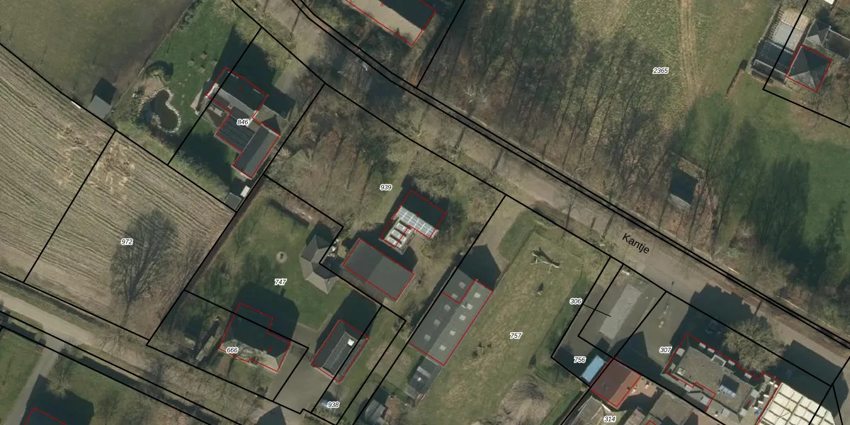 Het perceel waarop Kantje 5 staat heeft een oppervlakte van 1701 m². Dit is een zeer groot perceel. De perceeloppervlakte wordt geregistreerd door het Kadaster. Gedetailleerde informatie over de maten van dit perceel kunt u vinden in het rapport Kadastrale kaart met maatvoering van Kantje 5.