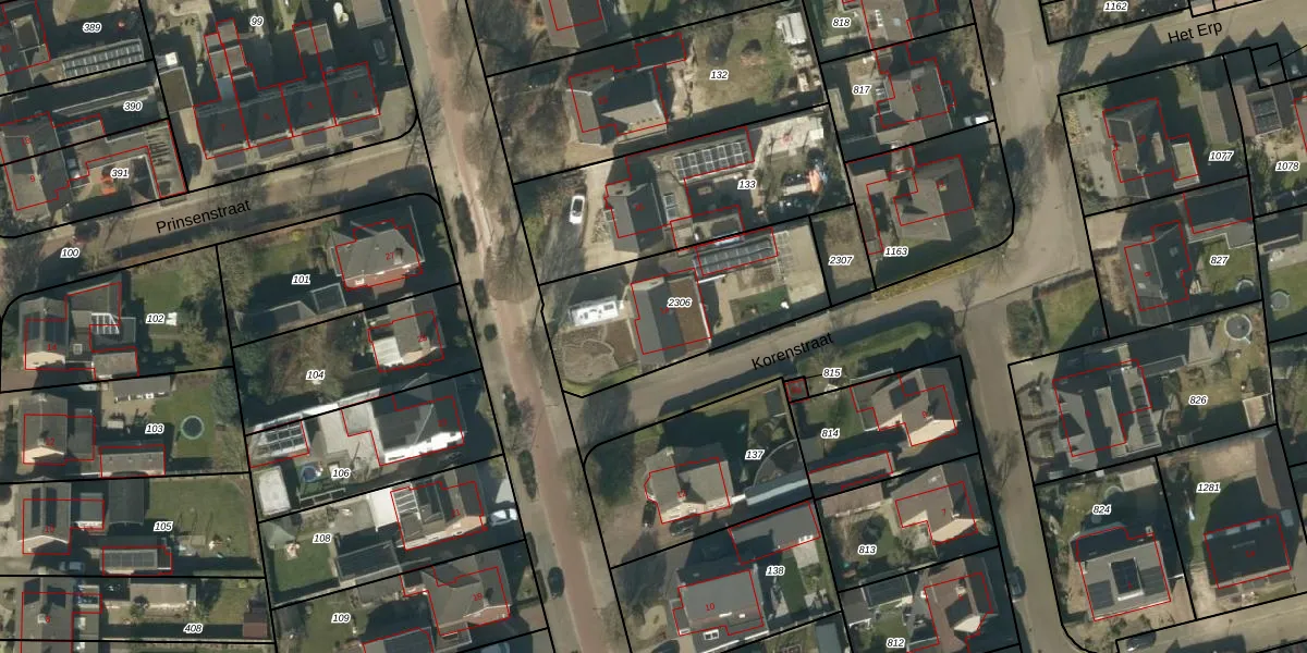 Gebruik de zoekbalk of klik op een perceel voor informatie over de adressen binnen dit perceel.