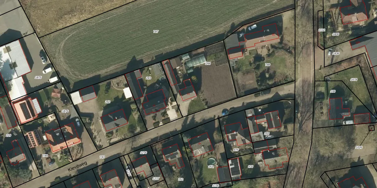 Kievitweg 13 is gelegen op kadastraal perceel NTR00F244. Deze kadastrale aanduiding is uniek en wordt gebruikt door het Kadaster om eigendomsrechten en andere zakelijke rechten vast te leggen. Het perceel maakt onderdeel uit van de kadastrale gemeente Nistelrode.