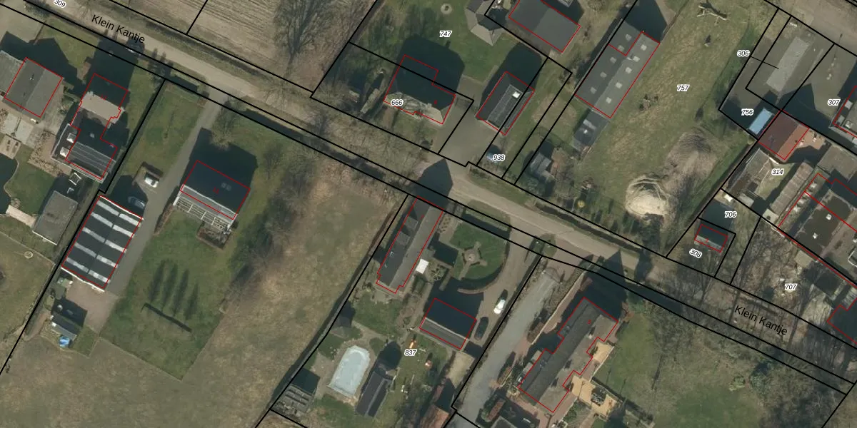 Het perceel waarop Klein Kantje 7 staat heeft een oppervlakte van 2080 m². Dit is een zeer groot perceel. De perceeloppervlakte wordt geregistreerd door het Kadaster. Gedetailleerde informatie over de maten van dit perceel kunt u vinden in het rapport Kadastrale kaart met maatvoering van Klein Kantje 7.