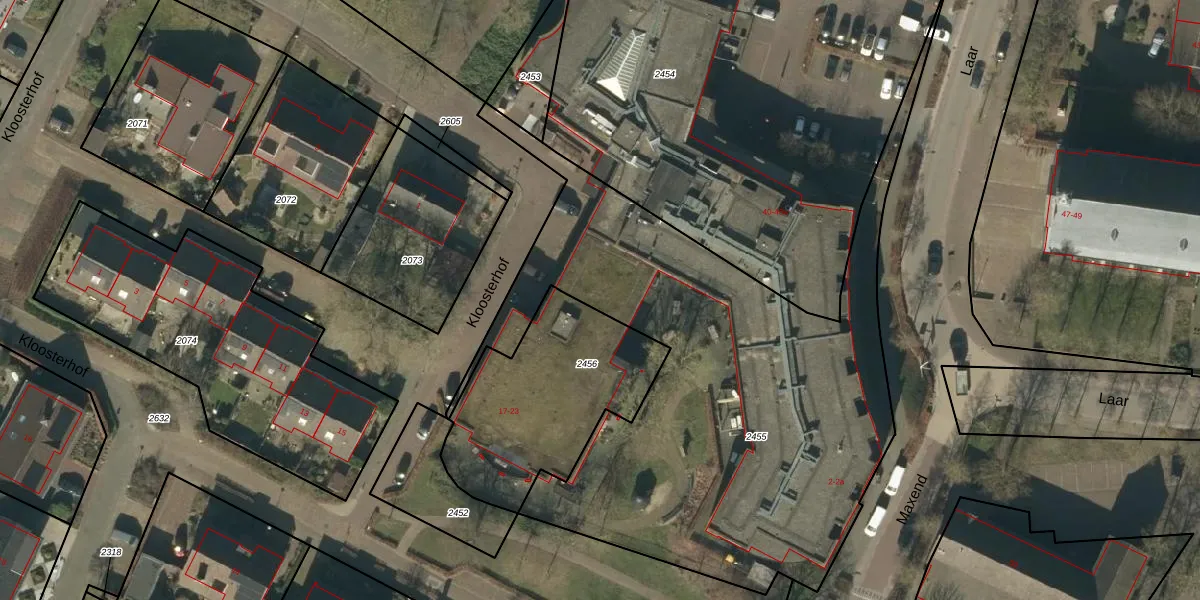 Kloosterhof 21 is gelegen op kadastraal perceel NTR00B2455. Deze kadastrale aanduiding is uniek en wordt gebruikt door het Kadaster om eigendomsrechten en andere zakelijke rechten vast te leggen. Het perceel maakt onderdeel uit van de kadastrale gemeente Nistelrode.
