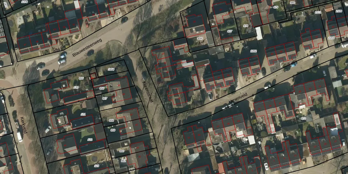 Het perceel waarop Korenstraat 38 staat heeft een oppervlakte van 3119 m². Dit is een zeer groot perceel. De perceeloppervlakte wordt geregistreerd door het Kadaster. Gedetailleerde informatie over de maten van dit perceel kunt u vinden in het rapport Kadastrale kaart met maatvoering van Korenstraat 38.