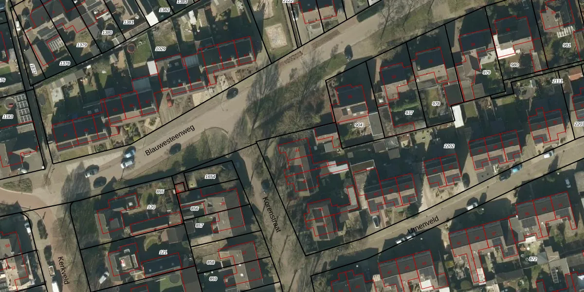Het perceel waarop Korenstraat 44 staat heeft een oppervlakte van 3119 m². Dit is een zeer groot perceel. De perceeloppervlakte wordt geregistreerd door het Kadaster. Gedetailleerde informatie over de maten van dit perceel kunt u vinden in het rapport Kadastrale kaart met maatvoering van Korenstraat 44.