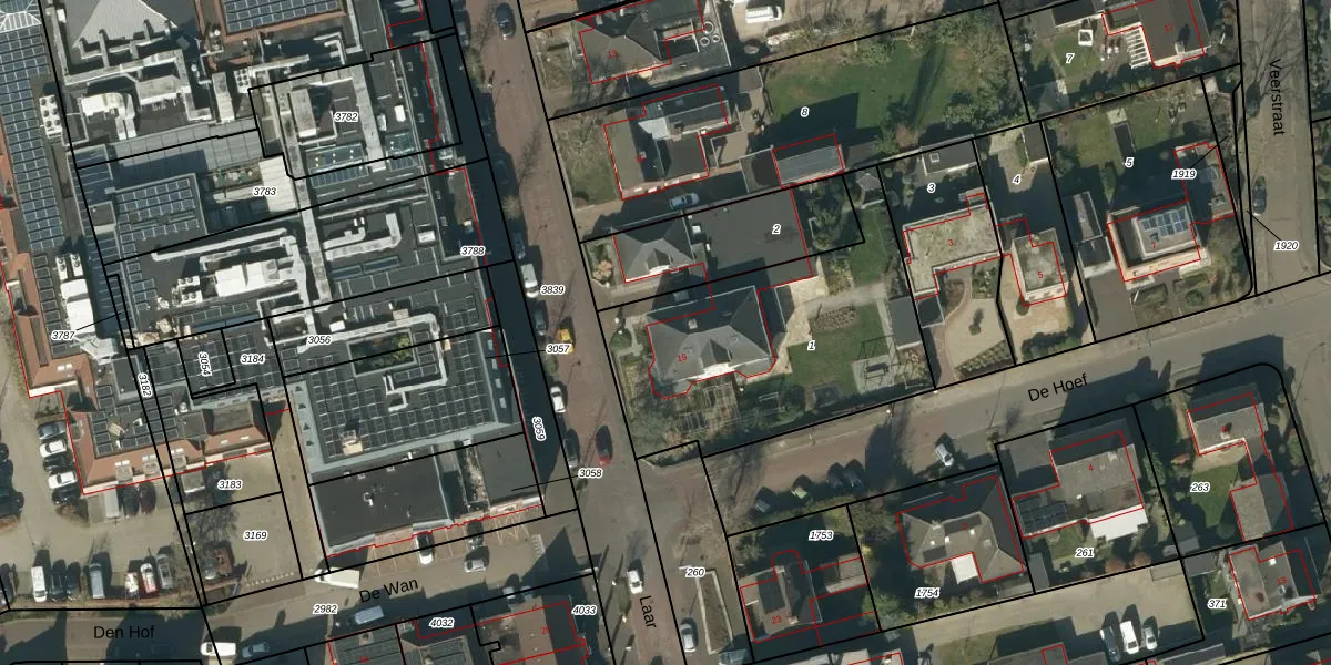 Het perceel waarop Laar 19 staat heeft een oppervlakte van 1180 m². Dit is een zeer groot perceel. De perceeloppervlakte wordt geregistreerd door het Kadaster. Gedetailleerde informatie over de maten van dit perceel kunt u vinden in het rapport Kadastrale kaart met maatvoering van Laar 19.