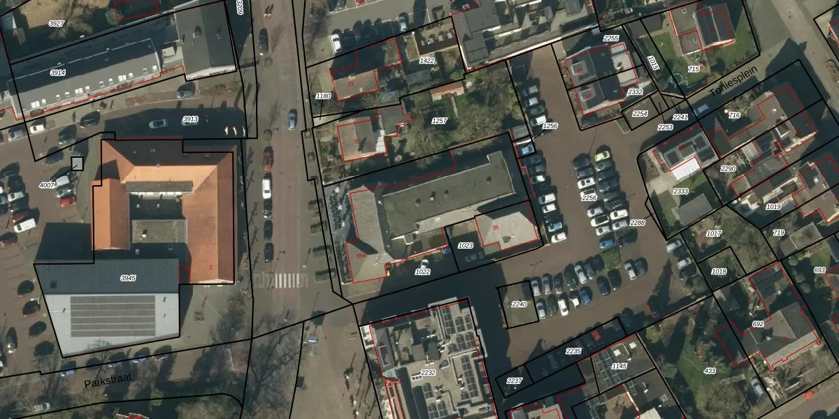 Gebruik de zoekbalk of klik op een perceel voor informatie over de adressen binnen dit perceel.