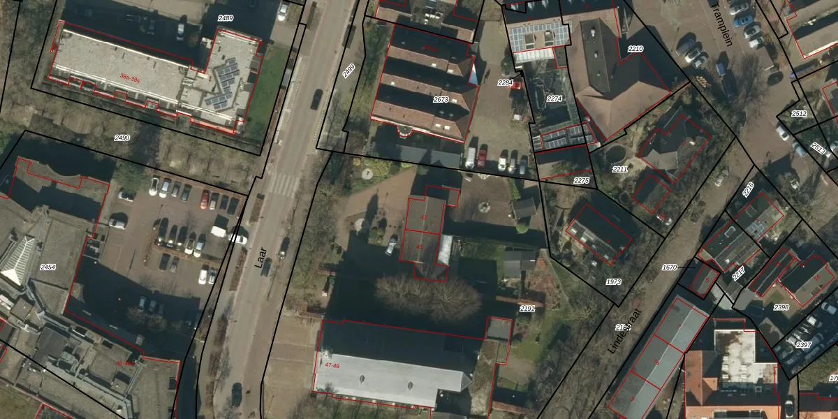 Het perceel waarop Laar 43 staat heeft een oppervlakte van 4745 m². Dit is een zeer groot perceel. De perceeloppervlakte wordt geregistreerd door het Kadaster. Gedetailleerde informatie over de maten van dit perceel kunt u vinden in het rapport Kadastrale kaart met maatvoering van Laar 43.