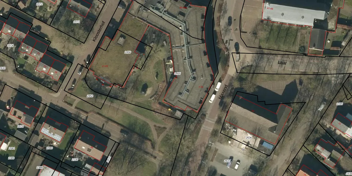 Het perceel waarop Laar 44-k staat heeft een oppervlakte van 2820 m². Dit is een zeer groot perceel. De perceeloppervlakte wordt geregistreerd door het Kadaster. Gedetailleerde informatie over de maten van dit perceel kunt u vinden in het rapport Kadastrale kaart met maatvoering van Laar 44-k.