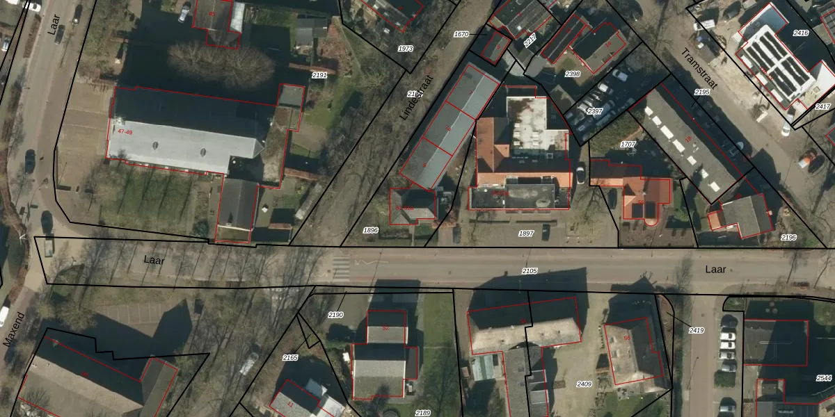 Het perceel waarop Laar 51-a staat heeft een oppervlakte van 725 m². Dit is een groot perceel. De perceeloppervlakte wordt geregistreerd door het Kadaster. Gedetailleerde informatie over de maten van dit perceel kunt u vinden in het rapport Kadastrale kaart met maatvoering van Laar 51-a.