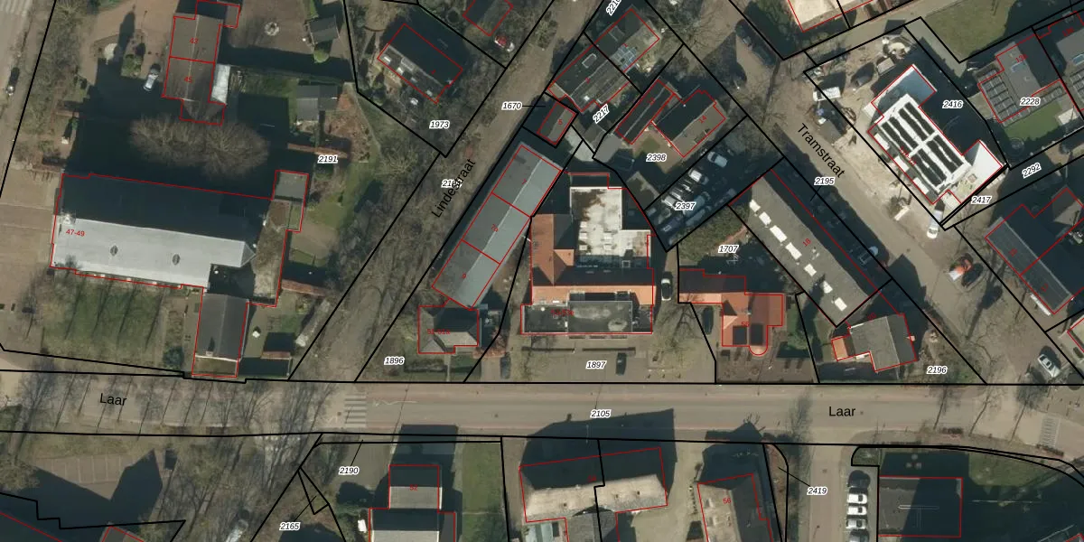 Het perceel waarop Laar 53 staat heeft een oppervlakte van 1190 m². Dit is een zeer groot perceel. De perceeloppervlakte wordt geregistreerd door het Kadaster. Gedetailleerde informatie over de maten van dit perceel kunt u vinden in het rapport Kadastrale kaart met maatvoering van Laar 53.