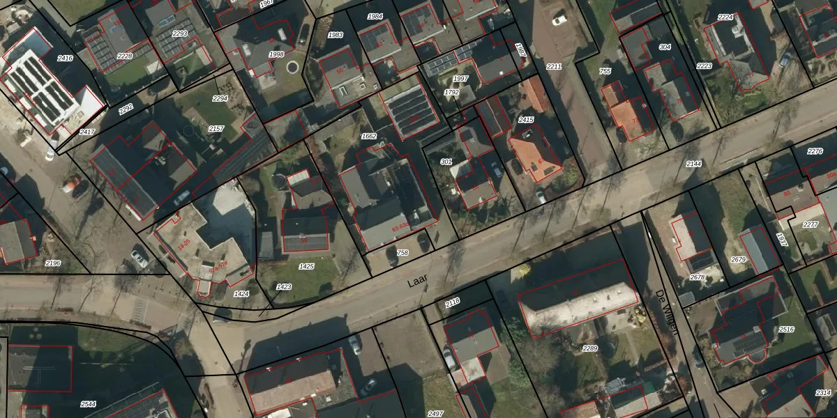 Het perceel waarop Laar 63-b staat heeft een oppervlakte van 953 m². Dit is een groot perceel. De perceeloppervlakte wordt geregistreerd door het Kadaster. Gedetailleerde informatie over de maten van dit perceel kunt u vinden in het rapport Kadastrale kaart met maatvoering van Laar 63-b.