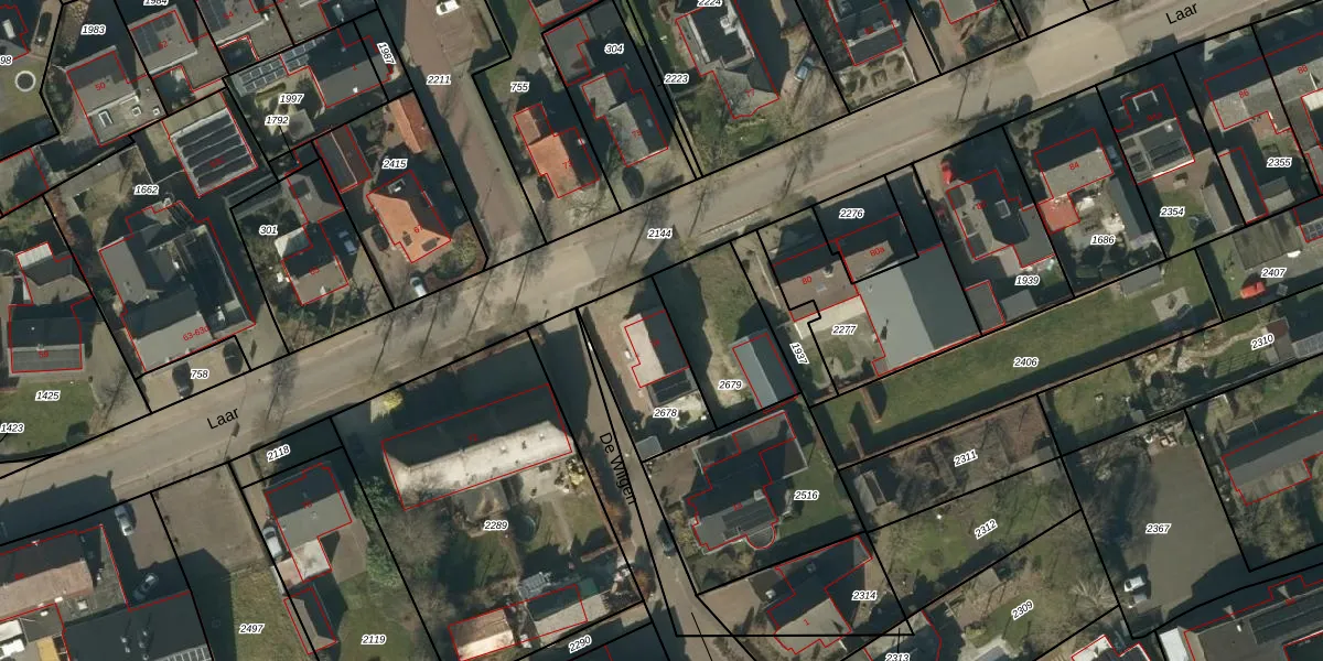 Het perceel waarop Laar 74 staat heeft een oppervlakte van 316 m². Dit is een groot perceel. De perceeloppervlakte wordt geregistreerd door het Kadaster. Gedetailleerde informatie over de maten van dit perceel kunt u vinden in het rapport Kadastrale kaart met maatvoering van Laar 74.