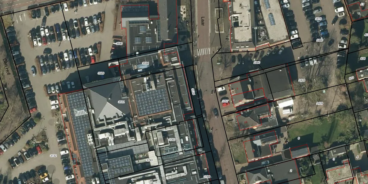 Gebruik de zoekbalk of klik op een perceel voor informatie over de adressen binnen dit perceel.