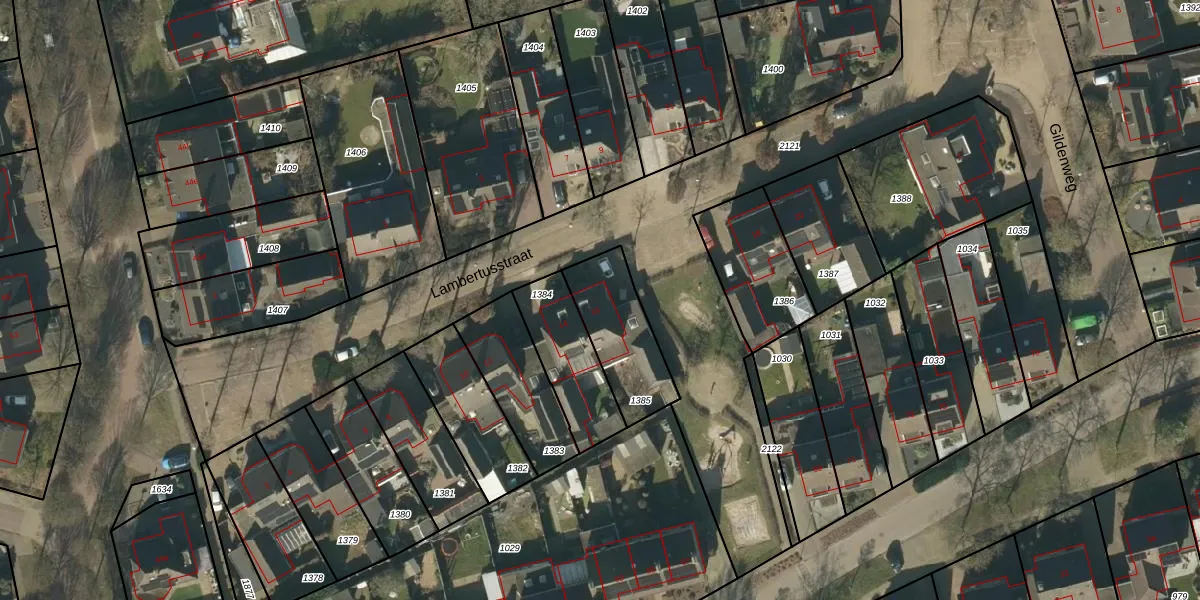 Het perceel waarop Lambertusstraat 16 staat heeft een oppervlakte van 283 m². Dit is een middelgroot perceel. De perceeloppervlakte wordt geregistreerd door het Kadaster. Gedetailleerde informatie over de maten van dit perceel kunt u vinden in het rapport Kadastrale kaart met maatvoering van Lambertusstraat 16.