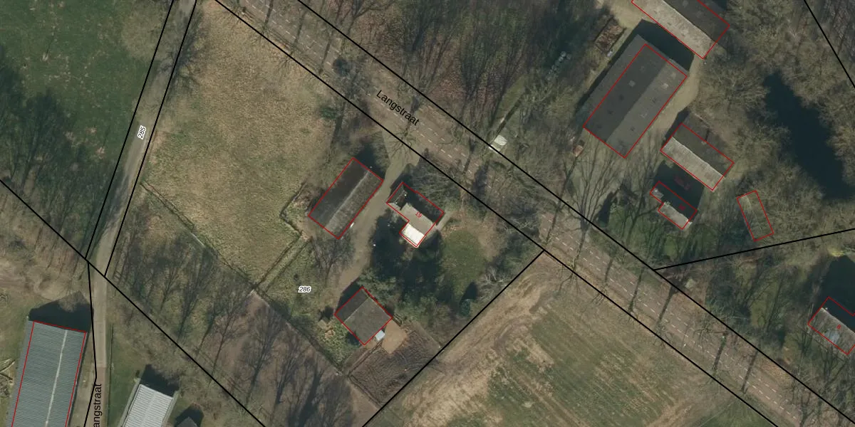 Het perceel waarop Langstraat 19 staat heeft een oppervlakte van 5920 m². Dit is een zeer groot perceel. De perceeloppervlakte wordt geregistreerd door het Kadaster. Gedetailleerde informatie over de maten van dit perceel kunt u vinden in het rapport Kadastrale kaart met maatvoering van Langstraat 19.