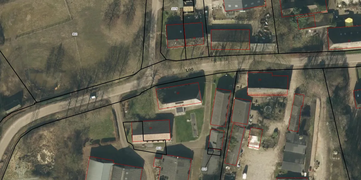 Het perceel waarop Loo 22 staat heeft een oppervlakte van 2,0 ha. Dit is een zeer groot perceel. De perceeloppervlakte wordt geregistreerd door het Kadaster. Gedetailleerde informatie over de maten van dit perceel kunt u vinden in het rapport Kadastrale kaart met maatvoering van Loo 22.
