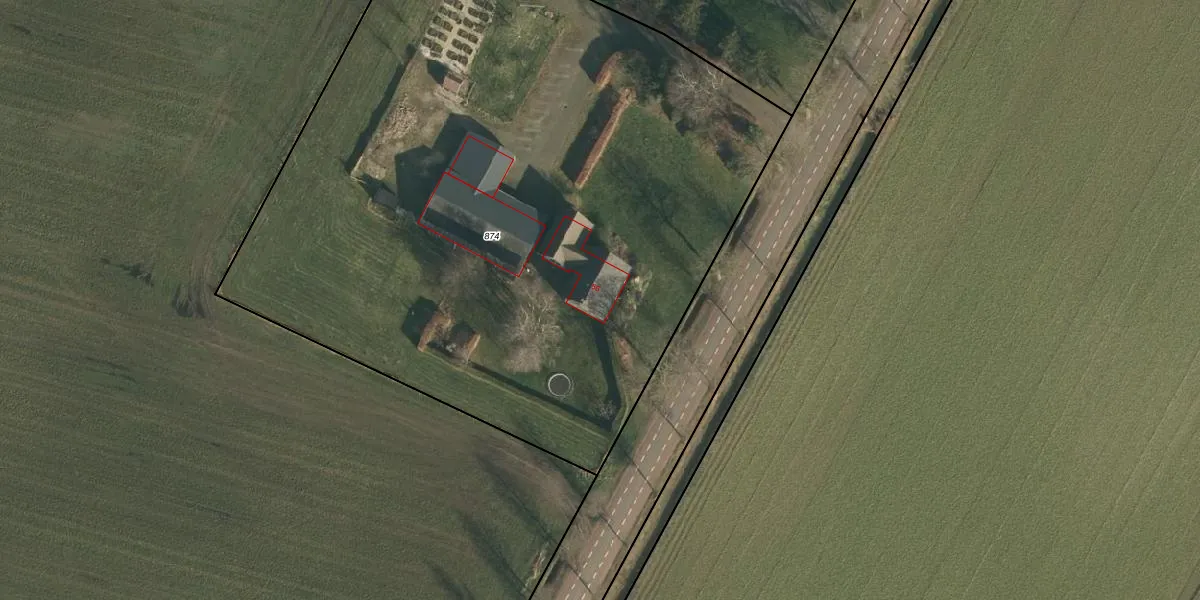 Het adres ligt op het perceel NTR00-I-874, dat zich in de kadastrale gemeente Nistelrode bevindt. Het perceel is 5000 m² groot. Dat is kleiner dan de gemiddelde perceeloppervlakte in Nistelrode, dat op 5084,28 m² ligt. Het grootste perceel in de kadastrale gemeente is 85,7 ha. Het kleinste perceel heeft een oppervlakte van 0 m². Op het perceel bevinden zich geen andere adressen. De huidige grenzen van het perceel zijn digitaal in de Basisregistratie Kadaster (BRK) geregistreerd op 13-07-2020.