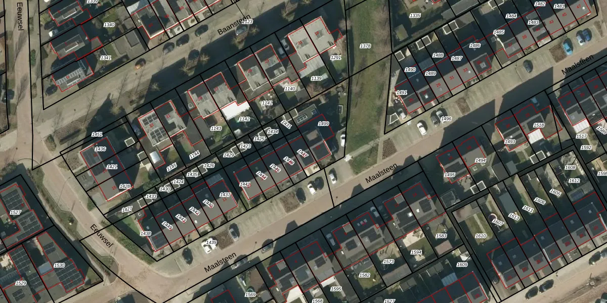 Het perceel waarop Maalsteen 21 staat heeft een oppervlakte van 78 m². Dit is een klein perceel. De perceeloppervlakte wordt geregistreerd door het Kadaster. Gedetailleerde informatie over de maten van dit perceel kunt u vinden in het rapport Kadastrale kaart met maatvoering van Maalsteen 21.