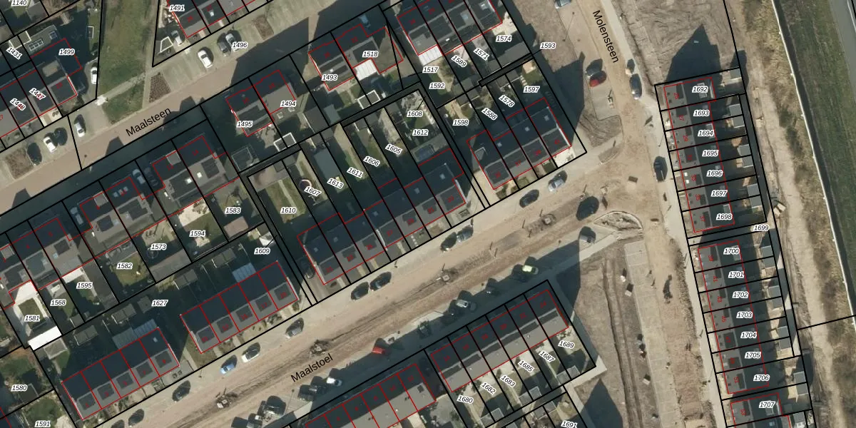 Het perceel waarop Maalstoel 31 staat heeft een oppervlakte van 176 m². Dit is een middelgroot perceel. De perceeloppervlakte wordt geregistreerd door het Kadaster. Gedetailleerde informatie over de maten van dit perceel kunt u vinden in het rapport Kadastrale kaart met maatvoering van Maalstoel 31.