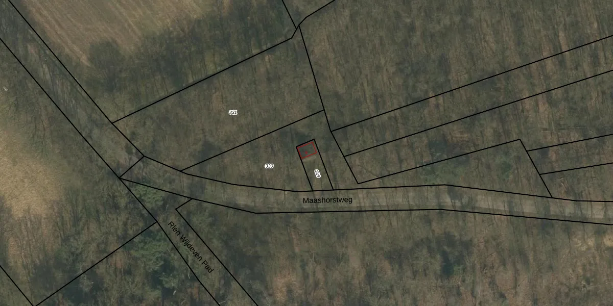 Maashorstweg 9 is gelegen op kadastraal perceel NTR00L329. Deze kadastrale aanduiding is uniek en wordt gebruikt door het Kadaster om eigendomsrechten en andere zakelijke rechten vast te leggen. Het perceel maakt onderdeel uit van de kadastrale gemeente Nistelrode.