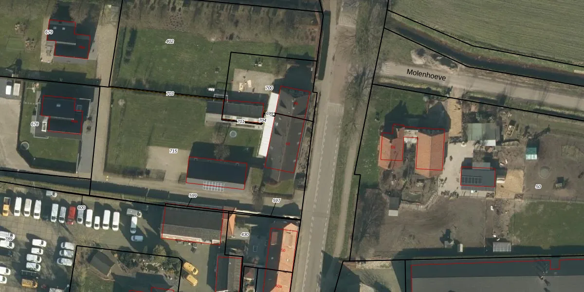 Het adres ligt op het perceel NTR00-K-715, dat zich in de kadastrale gemeente Nistelrode bevindt. Het perceel is kleiner dan gemiddeld in Nistelrode. Het perceel is 2631 m² groot, terwijl het gemiddelde ligt op 5101,48 m². Het kleinste perceel in de kadastrale gemeente is 0 m² groot. De grootste perceeloppervlakte is 85,7 ha. Er zijn geen andere adressen aanwezig op het perceel. In de Basisregistratie Kadaster (BRK) werden de grenzen van het perceel geregistreerd op 14-01-2021.
