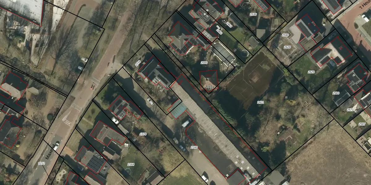 Het perceel waarop Maxend 5-a staat heeft een oppervlakte van 2505 m². Dit is een zeer groot perceel. De perceeloppervlakte wordt geregistreerd door het Kadaster. Gedetailleerde informatie over de maten van dit perceel kunt u vinden in het rapport Kadastrale kaart met maatvoering van Maxend 5-a.
