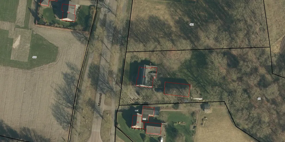 Het perceel waarop Maxend 83 staat heeft een oppervlakte van 6760 m². Dit is een zeer groot perceel. De perceeloppervlakte wordt geregistreerd door het Kadaster. Gedetailleerde informatie over de maten van dit perceel kunt u vinden in het rapport Kadastrale kaart met maatvoering van Maxend 83.