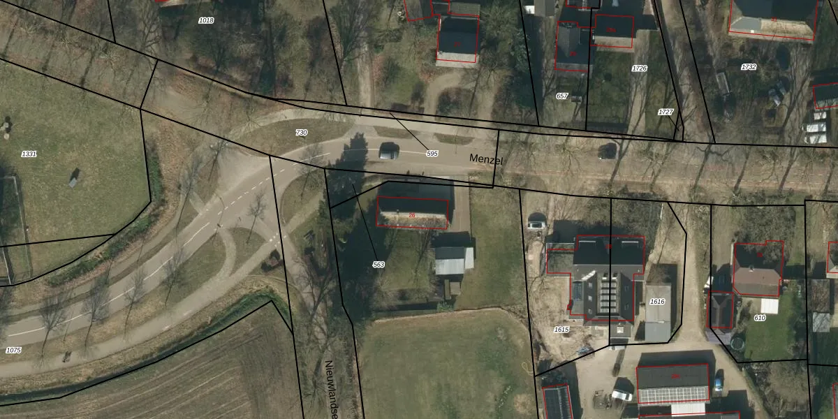Het perceel waarop Menzel 26 staat heeft een oppervlakte van 6140 m². Dit is een zeer groot perceel. De perceeloppervlakte wordt geregistreerd door het Kadaster. Gedetailleerde informatie over de maten van dit perceel kunt u vinden in het rapport Kadastrale kaart met maatvoering van Menzel 26.