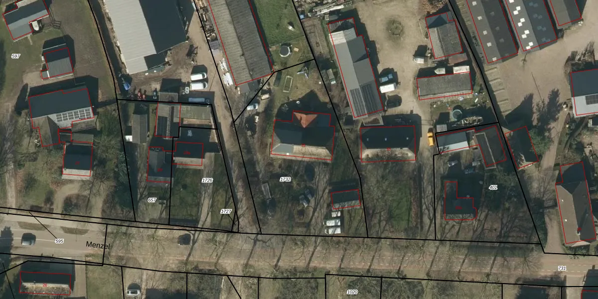 Het perceel waarop Menzel 31 staat heeft een oppervlakte van 1855 m². Dit is een zeer groot perceel. De perceeloppervlakte wordt geregistreerd door het Kadaster. Gedetailleerde informatie over de maten van dit perceel kunt u vinden in het rapport Kadastrale kaart met maatvoering van Menzel 31.