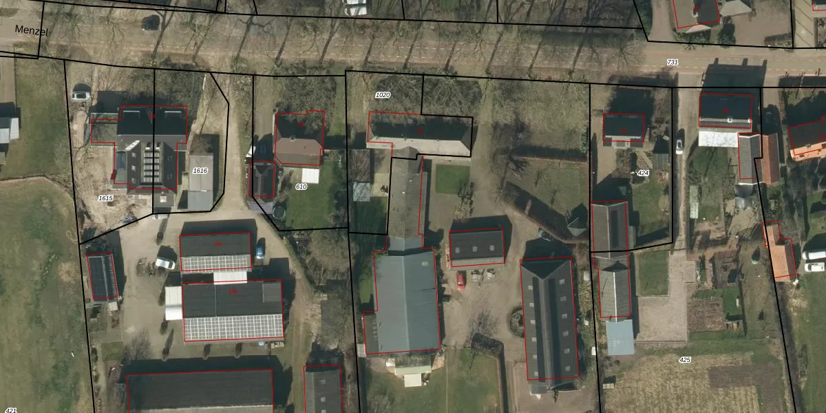 Het perceel waarop Menzel 32-a staat heeft een oppervlakte van 1,6 ha. Dit is een zeer groot perceel. De perceeloppervlakte wordt geregistreerd door het Kadaster. Gedetailleerde informatie over de maten van dit perceel kunt u vinden in het rapport Kadastrale kaart met maatvoering van Menzel 32-a.