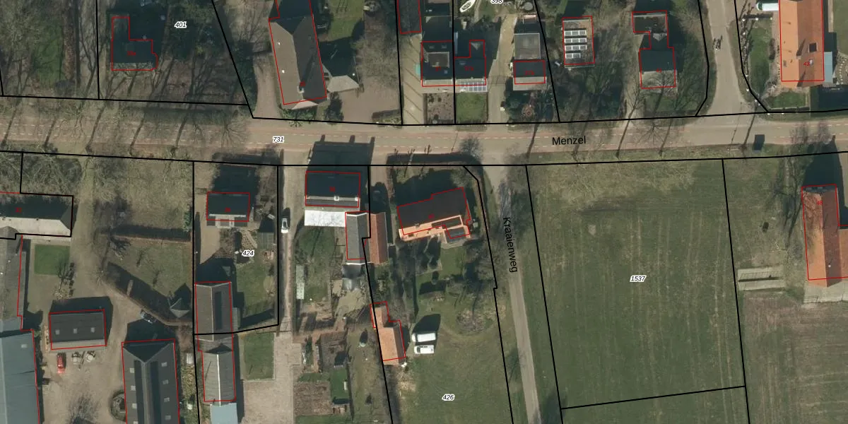 Het perceel waarop Menzel 40 staat heeft een oppervlakte van 2700 m². Dit is een zeer groot perceel. De perceeloppervlakte wordt geregistreerd door het Kadaster. Gedetailleerde informatie over de maten van dit perceel kunt u vinden in het rapport Kadastrale kaart met maatvoering van Menzel 40.