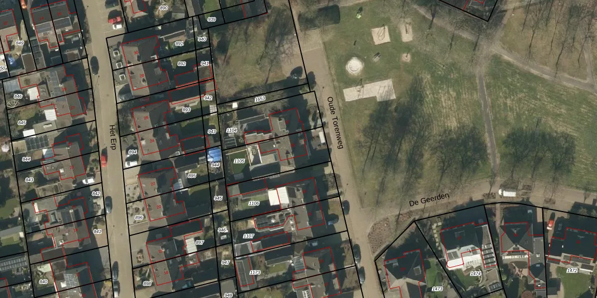 Het perceel waarop Oude Torenweg 35 staat heeft een oppervlakte van 427 m². Dit is een groot perceel. De perceeloppervlakte wordt geregistreerd door het Kadaster. Gedetailleerde informatie over de maten van dit perceel kunt u vinden in het rapport Kadastrale kaart met maatvoering van Oude Torenweg 35.