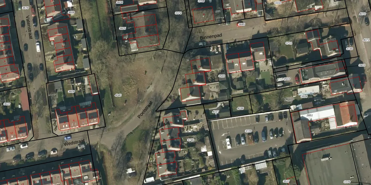 Het perceel waarop Poelstraat 10 staat heeft een oppervlakte van 1608 m². Dit is een zeer groot perceel. De perceeloppervlakte wordt geregistreerd door het Kadaster. Gedetailleerde informatie over de maten van dit perceel kunt u vinden in het rapport Kadastrale kaart met maatvoering van Poelstraat 10.
