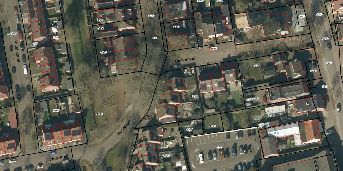 Het perceel waarop Poelstraat 14 staat heeft een oppervlakte van 1608 m². Dit is een zeer groot perceel. De perceeloppervlakte wordt geregistreerd door het Kadaster. Gedetailleerde informatie over de maten van dit perceel kunt u vinden in het rapport Kadastrale kaart met maatvoering van Poelstraat 14.