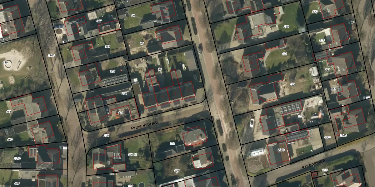 Prinsenstraat 1 is gelegen op kadastraal perceel NTR00F99. Deze kadastrale aanduiding is uniek en wordt gebruikt door het Kadaster om eigendomsrechten en andere zakelijke rechten vast te leggen. Het perceel maakt onderdeel uit van de kadastrale gemeente Nistelrode.