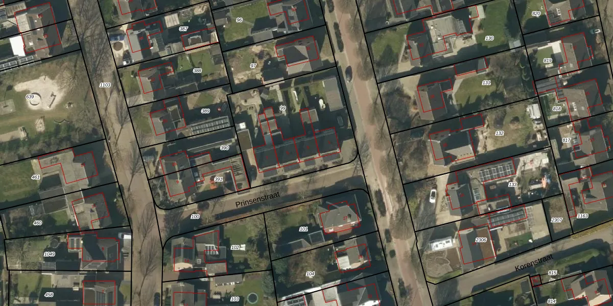 Het perceel waarop Prinsenstraat 3 staat heeft een oppervlakte van 1160 m². Dit is een zeer groot perceel. De perceeloppervlakte wordt geregistreerd door het Kadaster. Gedetailleerde informatie over de maten van dit perceel kunt u vinden in het rapport Kadastrale kaart met maatvoering van Prinsenstraat 3.